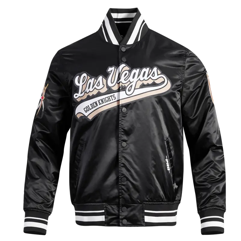 NHL VEGAS GOLDEN KNIGHTS SCRIPT TAIL MEN’S SATIN JACKET (BLACK)