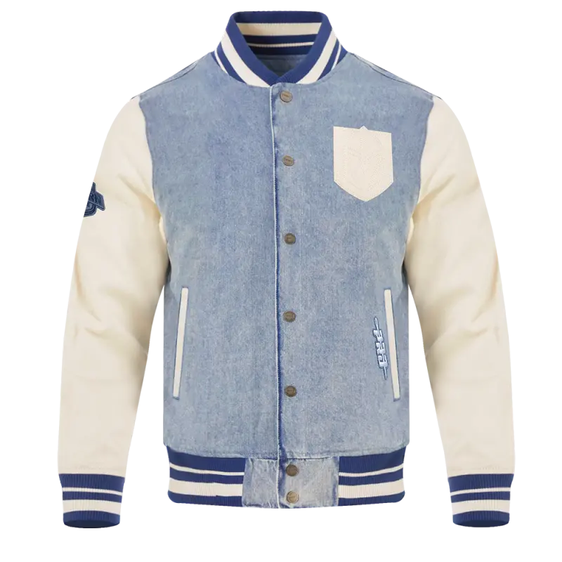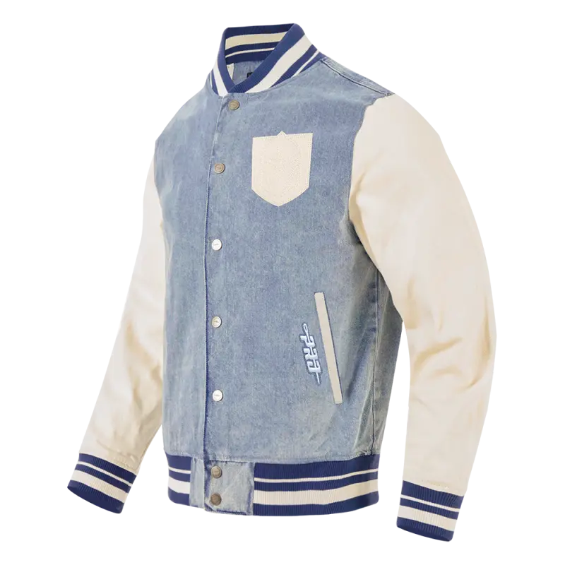 NHL VEGAS GOLDEN KNIGHTS VARSITY BLUES MEN’S DENIM VARSITY JACKET (DENIM\/LINEN)