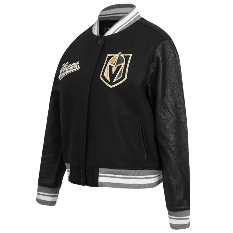 NHL VEGAS GOLDEN KNIGHTS SCRIPT TAIL WOMEN’S WOOL VARSITY JACKET (BLACK\/GRAY)
