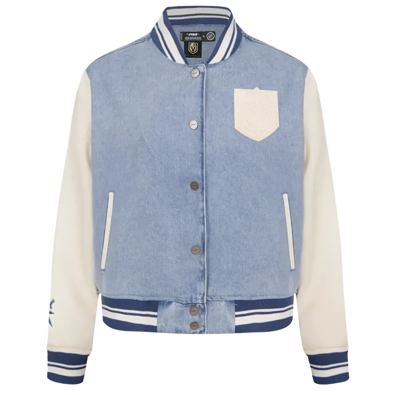 NHL VEGAS GOLDEN KNIGHTS VARSITY BLUES WOMEN’S W DENIM VARSITY JACKET (DENIM\/LINEN)