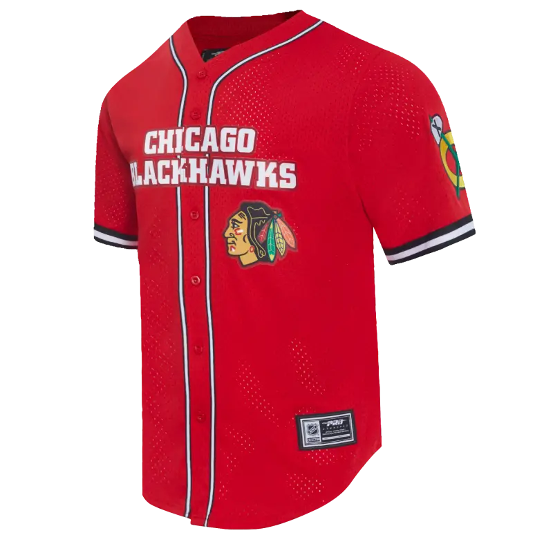 NHL CHICAGO BLACKHAWKS SCRIPT TAIL MEN’S MESH BUTTON DOWN SHIRT (RED\/BLACK)