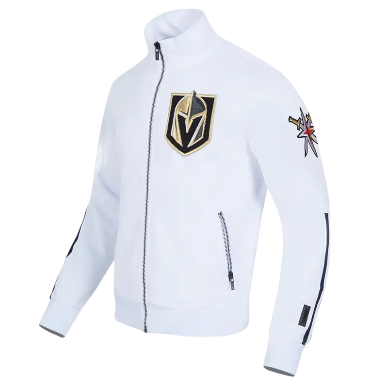 NHL VEGAS GOLDEN KNIGHTS CLASSIC CHENILLE MEN’S DOUBLE KNIT TRACK JACKET (WHITE\/BLACK)