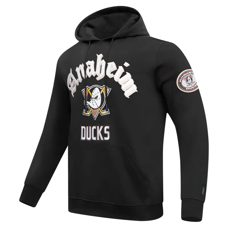 The Pro Standard Premium NHL Anaheim Ducks Old English Men’s PO Hoodie (Black)