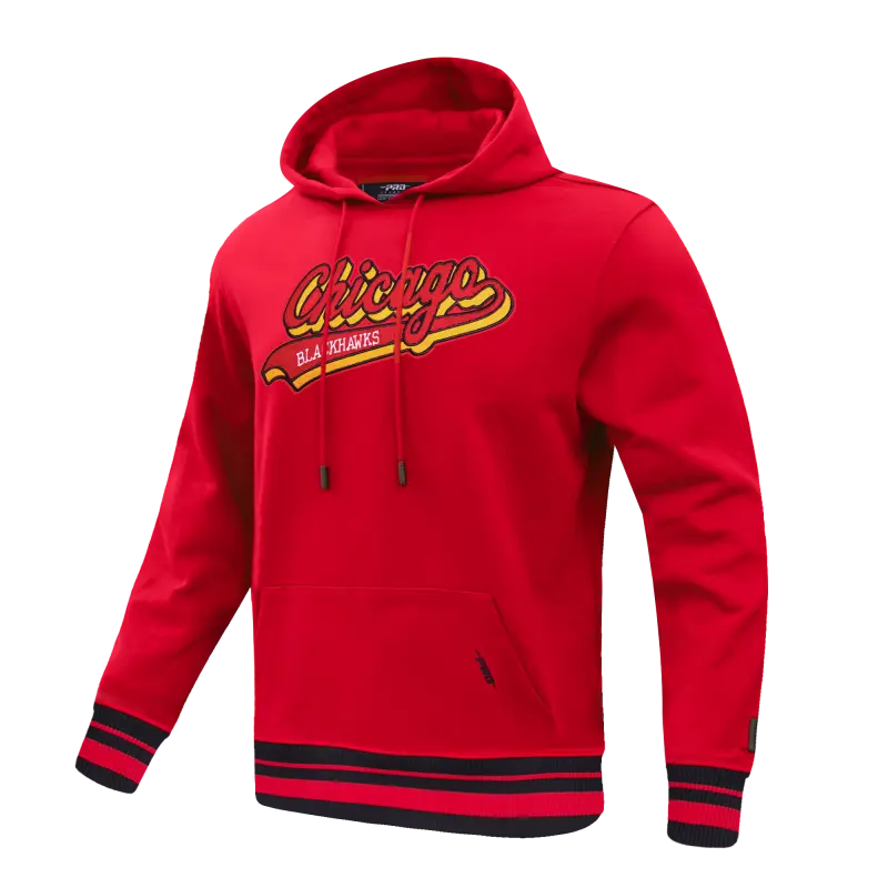 NHL CHICAGO BLACKHAWKS SCRIPT TAIL MEN’S RIB FLEECE PULLOVER HOODIE (RED\/BLACK)