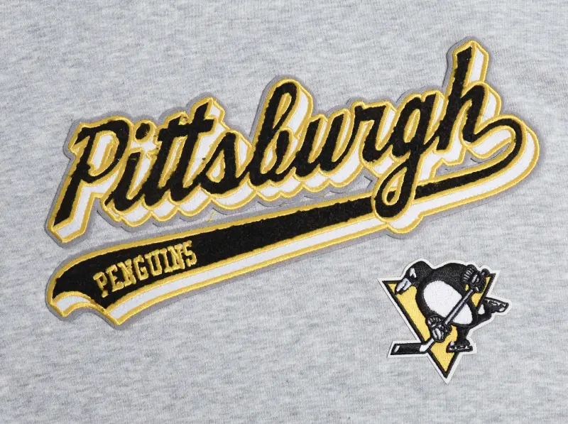 Home / Shop / SWEATSHIRTS / NHL PITTSBURGH PENGUINS SCRIPT TAIL WOMEN’S RIB FLEECE CROPPED PULLOVER HOODIE (HEATHER GRAY\/BLACK)